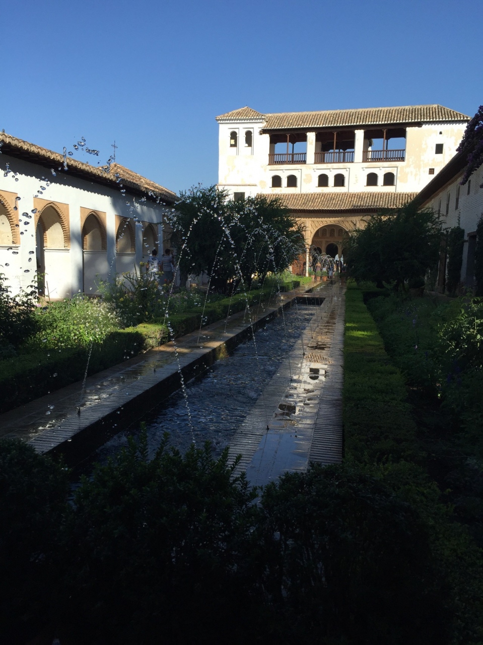 アルハンブラ宮殿の一番奥にあるヘネラリーフェ離宮にあります。アセキアとは水路のことだそうで、綺麗に刈り込まれた植栽のなかに水路があり、左右から沢山の噴水がでています。夏場の離宮とのことで、暑いグラナダには最高の避暑地だったの推測できます。