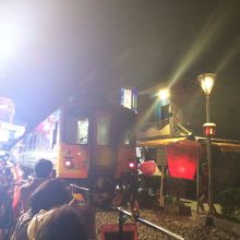 天燈上げ準備をしてたら普通にローカル線が走ってきました。参加者のみんなは店員さんの掛け声で一斉に線路脇に退避。電車通過まで、いきなり撮り鉄に。夜の十ふんで楽しい時間を過ごすことができました。