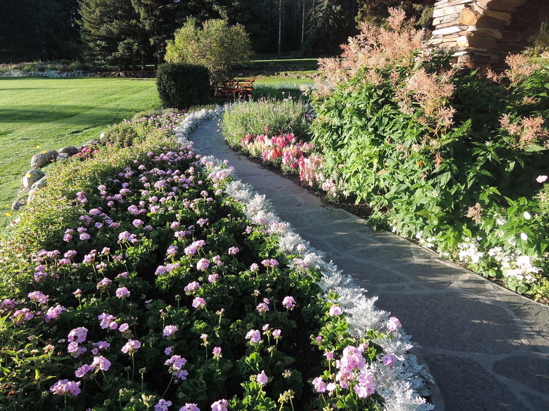 花と芝生が綺麗にメンテナンスされていてここでゆっくり過ごすのも良いでしょう