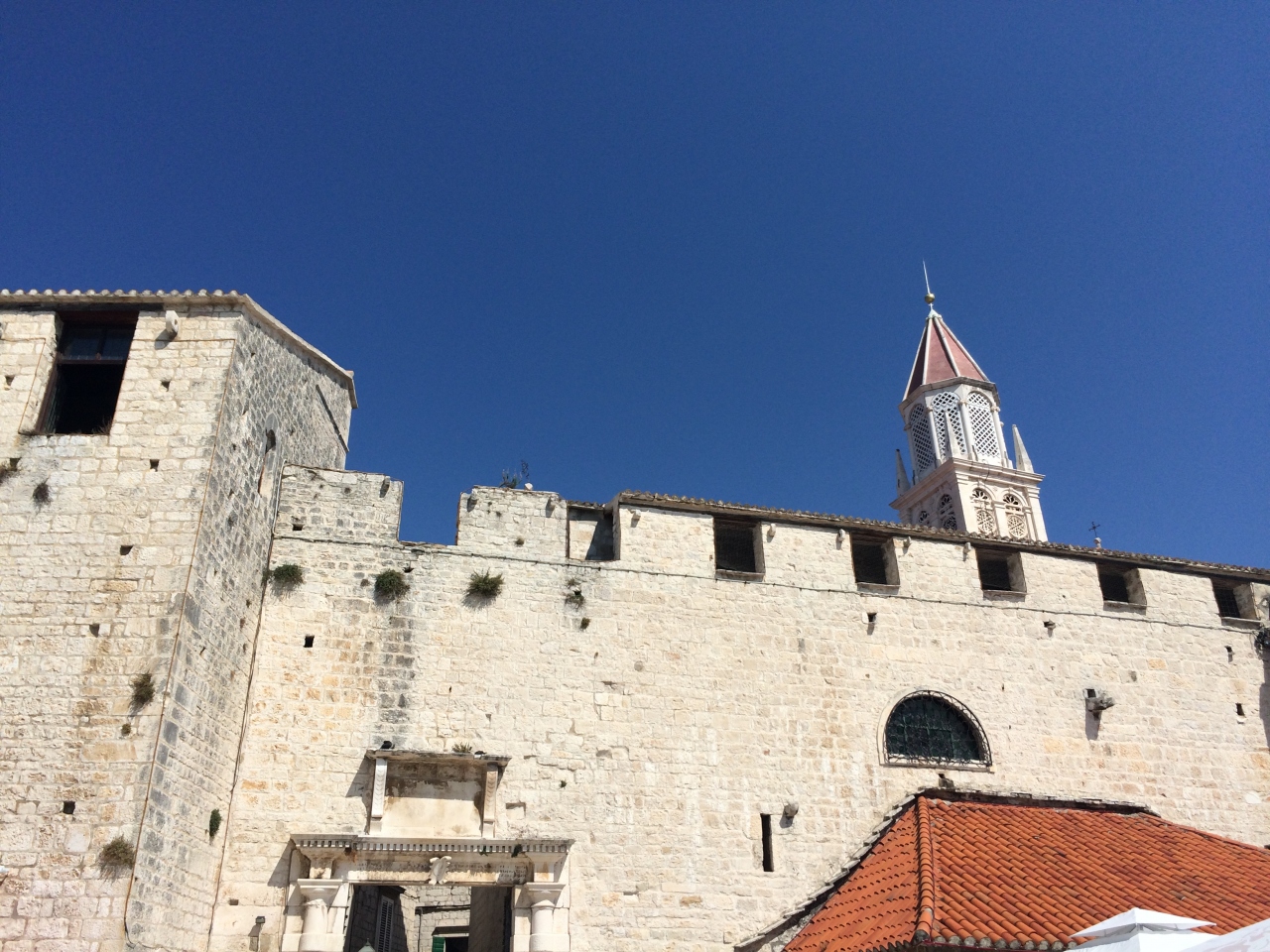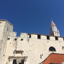 南門の海沿い近くにある修道院で、石つくりの壁と塔はとてもシンプルで地味なつくりですが、歴史のある雰囲気を醸し出しています。トロギールの街の雰囲気にもとても自然に溶け込んでいて、夕方海からみた修道院の景色も美しいです。