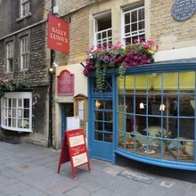 バースの街中、少し細い道に入ったところにあります。バンズというパンの老舗店だということで行ってみました。入り口を入って階段を地下に下りると、小さな博物館(?)あるいはお土産ショップ(?)と思われるところがあって、名物のバンズも売っています。