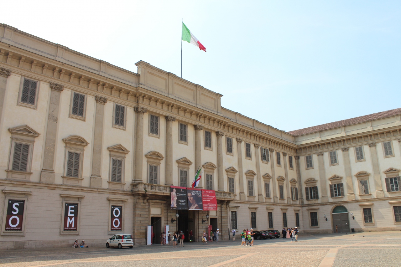 ミラノ大聖堂の南に位置する建造物。イタリア国旗がなければ見逃してしまいそうな感じです。かつては王宮だったのですから歴史のあるものですが、現在は博物館として使用されているようです。