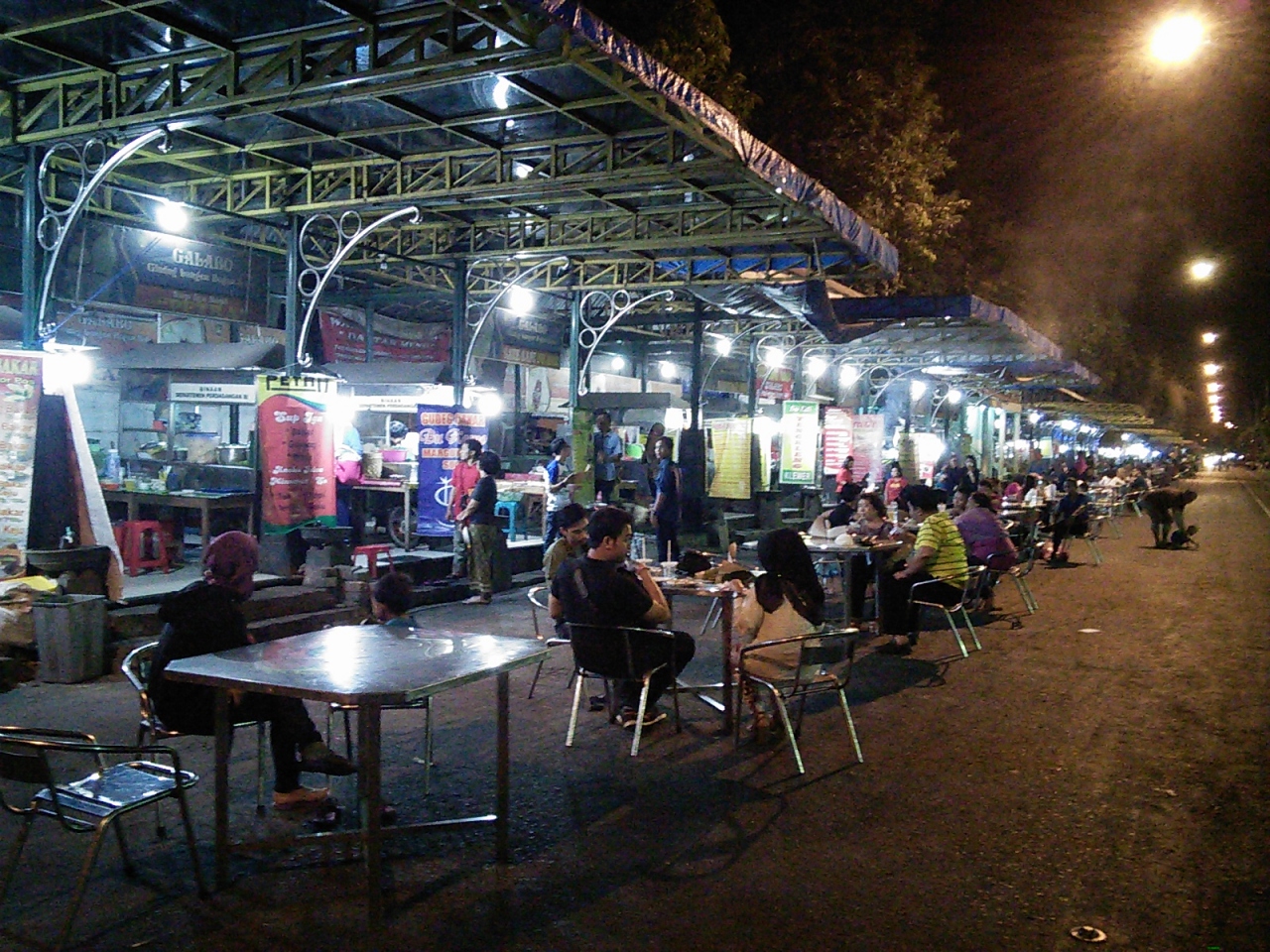 ソロの街を東西に貫くJalan Slamet Riyadi沿い、カスナナン王宮北広場から始まる屋台の集合体。夕方はからは前の通りを歩行者天国にしてイスとテーブルか並びます。しかし平日の夜は人は閑散、路上で音楽の演奏もありますがかえって寂しさを助長しているようです。週末は多少人出があります。完全ローカルの屋台かといえばそうではなく若干のツーリスティックさもあります。値段もやや高め。