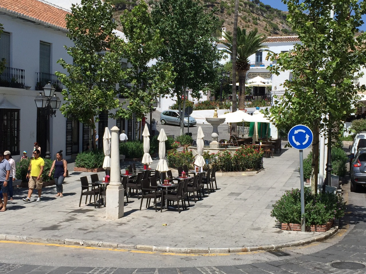 闘牛場や展望台からバス乗り場方面に向かう途中にあります。地形的にはすり鉢の底のようなところです。テーブルとパラソルが置いてあり、食事ができるようです。周りにはお土産屋などが多く、実質的には街の一番の繁華街かもしれません。