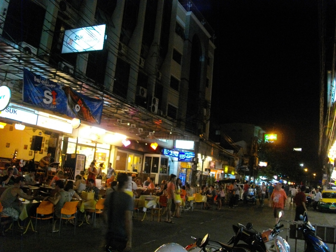 カオサン通りの1本北側の通りで、道路幅はやや広めで東側は曲がっている。道路沿いにはレストラン、カフェ、ショップ、ホテル、旅行代理店などがずらりと並んでいる。昼間もかなりの人が歩いているが、夕方以降になると歩道や車道側にもテーブルを出したり、屋台が並び沢山の人がいる。通り沿いのカジュアルなレストランで食事をしたが、特に美味しい訳ではないが気軽に食事をしたりするにはいい処である。