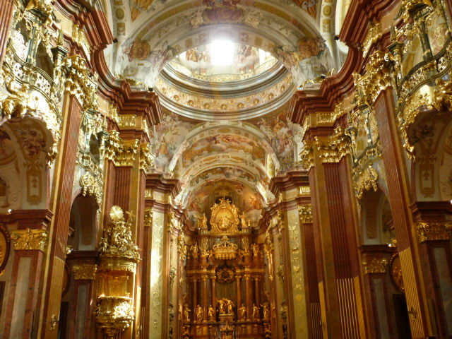 中は荘厳で、柱の装飾や天井の絵も素晴らしいです。