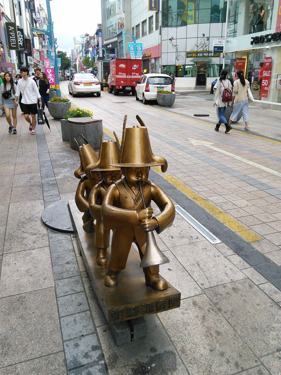 釜山タワーの足下のにぎやかな通りです。