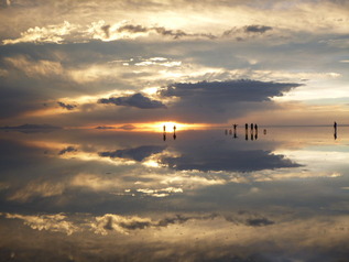 ウユニ塩湖は南北約100km、東西約250km、面積約10,582km2もあるそうです。