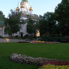 真っ白な建物にエメラルドグリーンが映えて可愛い教会です。黄金の玉ねぎが輝いていました。朝早くからお祈りに来ている人が出入りしていましたので内部の見学は遠慮しました。午後は観光客の人たちが周りで写真を撮っていて観光名所なんだなぁと思いました。
