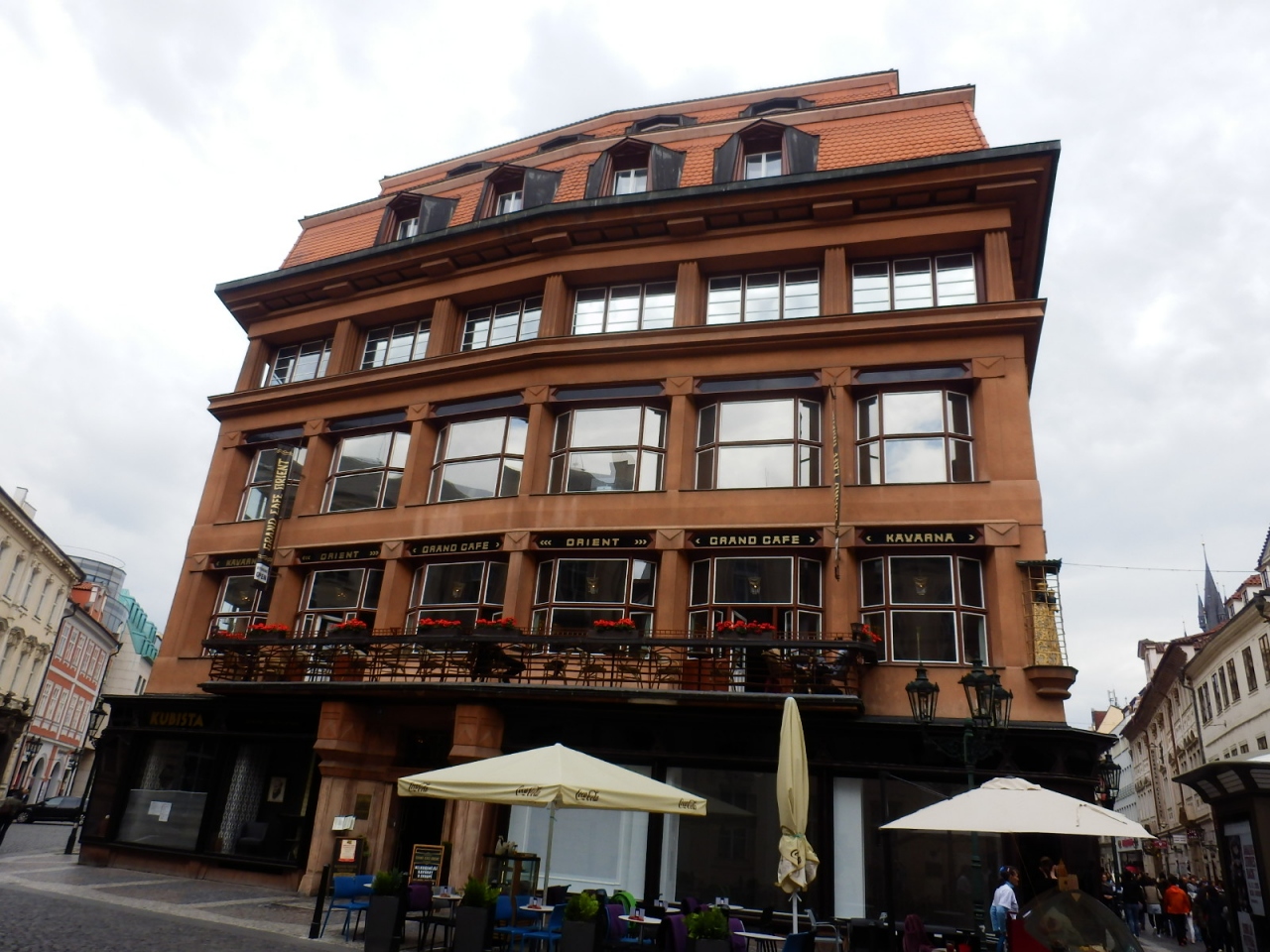 旧市街広場と火薬塔を結ぶ観光客が混みあう通り沿いにあります。三叉路の角地にありますが、外観はあまり目立たないため、最初は通りすぎてしまいました。この建物の見どころは建物の中にある螺旋階段だと私は思います。2階のカフェに入る振りして螺旋階段を上がって、見上げたり見下ろしたりするのも良いと思います。(2階のカフェのインテリアも素敵なので、入店をオススメしますが)