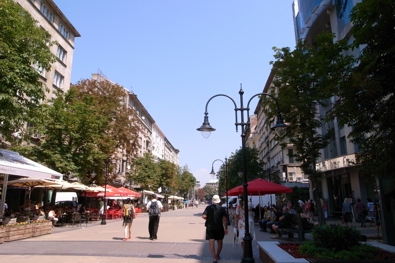 とても広い通りの両側にお店やカフェが並んでいます。オープンカフェはどこもいっぱいで賑わっていました。バラ製品のお店もありました。アイスクリーム屋さんもよく見かけました。アジアのファストフードもあり、食べるものには困らない感じです。
