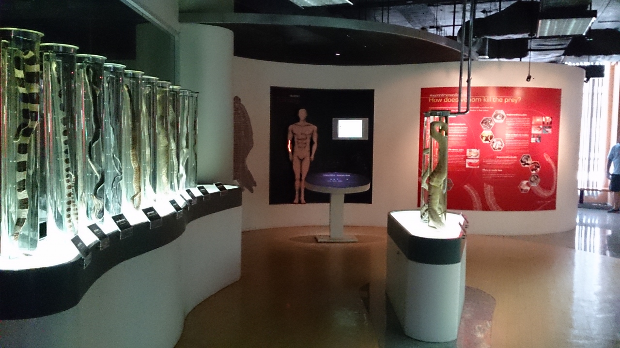 地下鉄のサムヤーン駅らすぐの場所にあって、タイ赤十字内にあって、大通りからは、ここにスネークファームがあるのかと心配になるような感じですが、正門から入ると随所に案内看板があるの迷うことはありません。タイ赤十字の建物の裏にあるので見つけにくいですがわかります。入園料は高めで200Bしますが、スネークショーと博物館に入ることを考えれば、その充実度からすると適正価格だと理解できます。特にスネークショーはキングコブラなど、日本人はテレビでしか見たことのない、あの蛇が立ち上がった姿が身近に見れますので貴重です。博物館は1階が蛇の展示で何十種類もの蛇が展示されており圧巻です。2階は蛇関連の資料や標本など貴重な素材を見ることが出来ます。