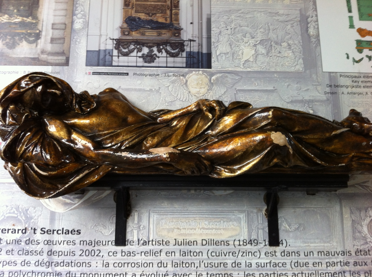 グランプラスからちょっと入ったところにあります。ダンドワの通りなので、おそらく簡単に見つけることができると思います。右手か左手に触れるとご利益があるみたいで、像はすでにピカピカでした。私も、像を磨いてきました♪