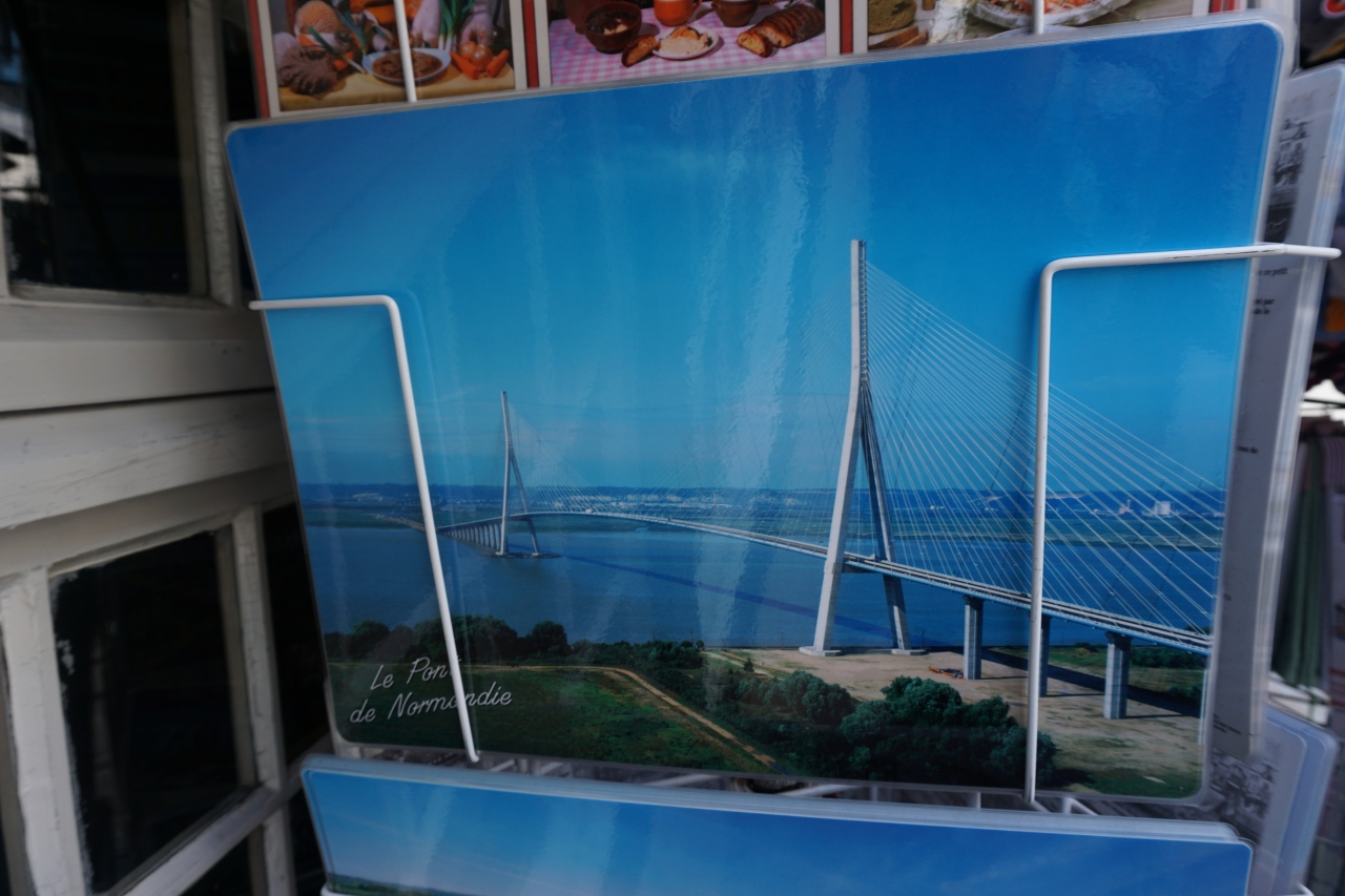 オンフルールからエトルタへ向かう途中で渡りました。セーヌ川の河口に架かっている斜張橋で、1995年に完成した橋です。長さは2143.21m。そのうち856mが主塔間の距離(中央径間)だそうです。橋は真ん中が高く、山に登って下りるような感じでした。