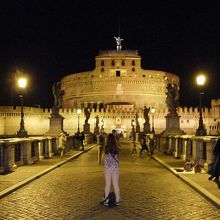 サンタンジェロ城のライトアップを見に行きました。サンタンジェロ橋の上から眺めるその姿は期待していた通りの素晴らしいものでした。夜とはいえ、写真を撮る人々の姿もそれなりに見かけましたので、橋の近くは安全面でも問題ないような気はしました。