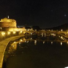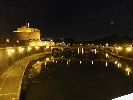 バチカン周辺でサンピエトロ大聖堂やサンタンジェロ城などの夜景を鑑賞したついでにテヴェレ川沿いを散歩しました。テヴェレ川は昼間見てもあまり綺麗に感じませんが、夜は余計な部分が目立たたないためか、良い感じでした。