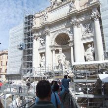 工事中のために水は抜かれていましたが、その代わりに泉の上に足場が組まれていて歩くことができました。底にたまっている小銭を掃除機で一生懸命に回収していましたが、その横で新たに投げ入れる観光客もいますので、しばらく作業は続きそうな雰囲気でした。