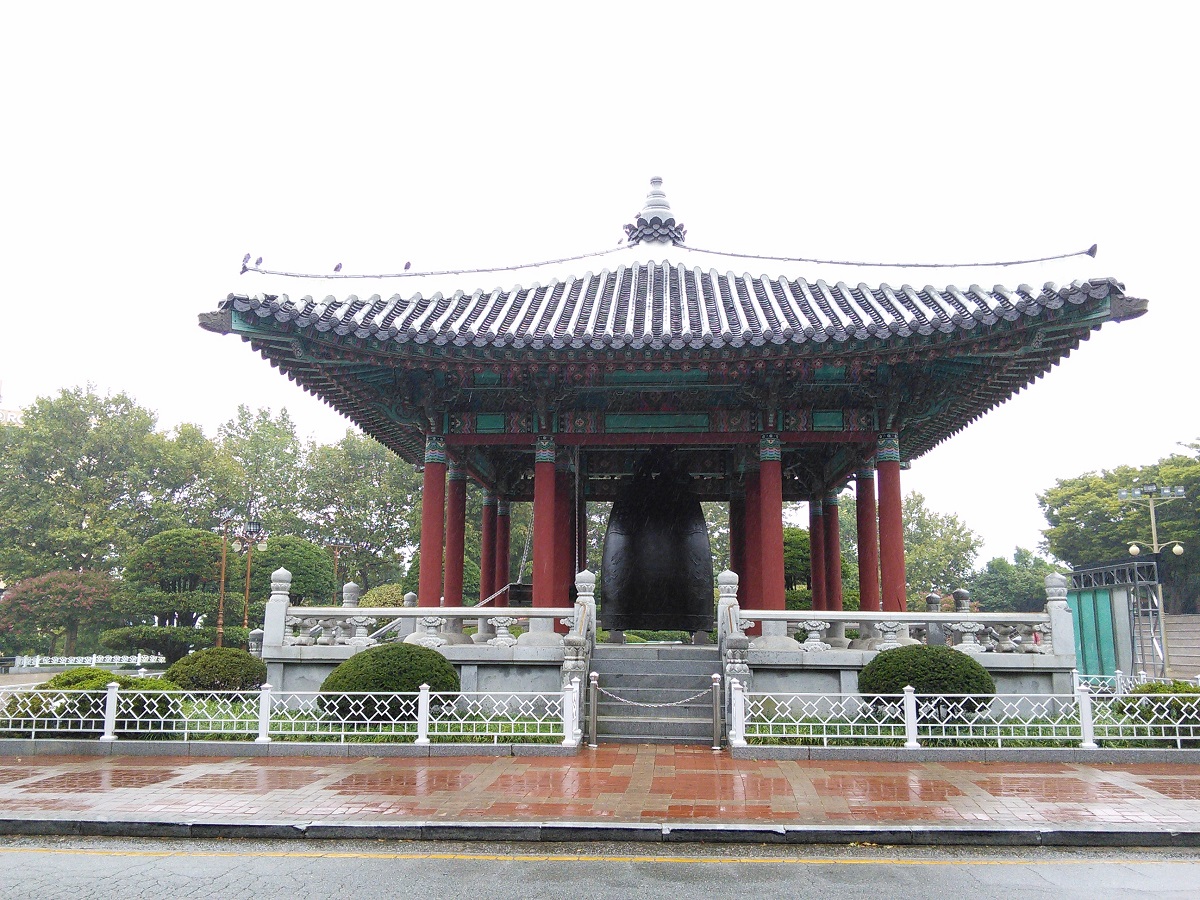 韓国風の屋根の鐘楼にぶら下がっていますが、ふだんは見るだけで近寄れません。
