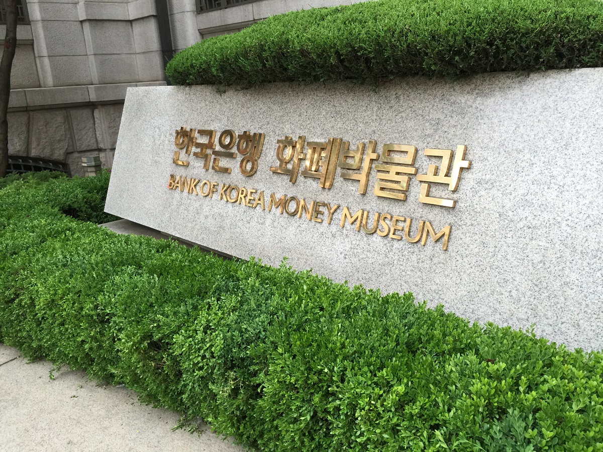 ソウルのシンボル南大門から明洞の方へ向かうと宇宙人の顔みたいな現代的な形のソウル中央郵便局の入っている建物が正面にそびえているんですが、その交差点の反対側に石造りの重厚な歴史的風格を感じる建物が建っています。それが韓国銀行の貨幣博物館の建物です。中の展示は興味がわくというほどではなくて、建物の外観を見学するだけで良かったかなという感じでした。