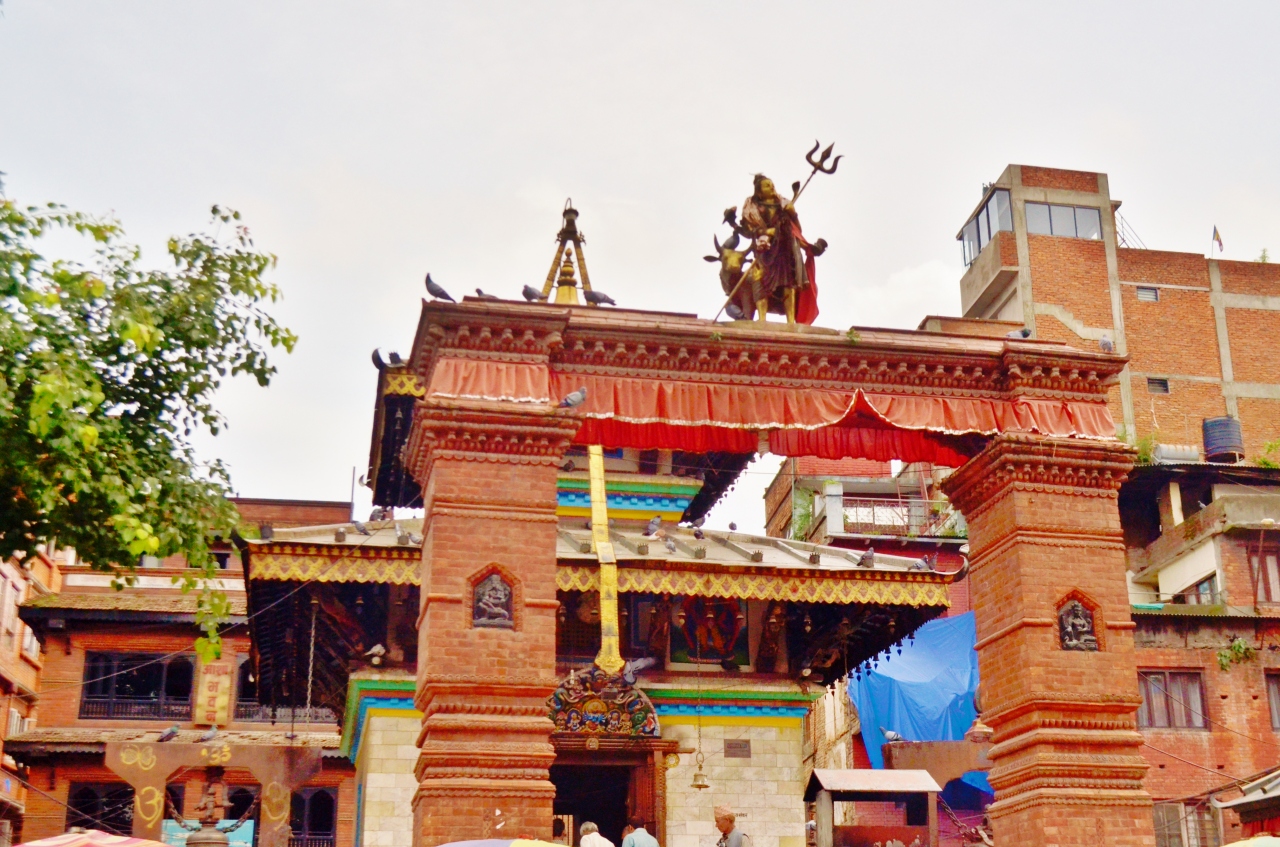 ネパールの首都、カトマンズのダルバール広場の北側に位置するマヘンドレシュウォル寺院。マッラ王朝の王、マヘンドラ・マッラにより16世紀に建設された。門は見た感じ新しく再建されたようなものなので、震災に影響がなかったようだ。