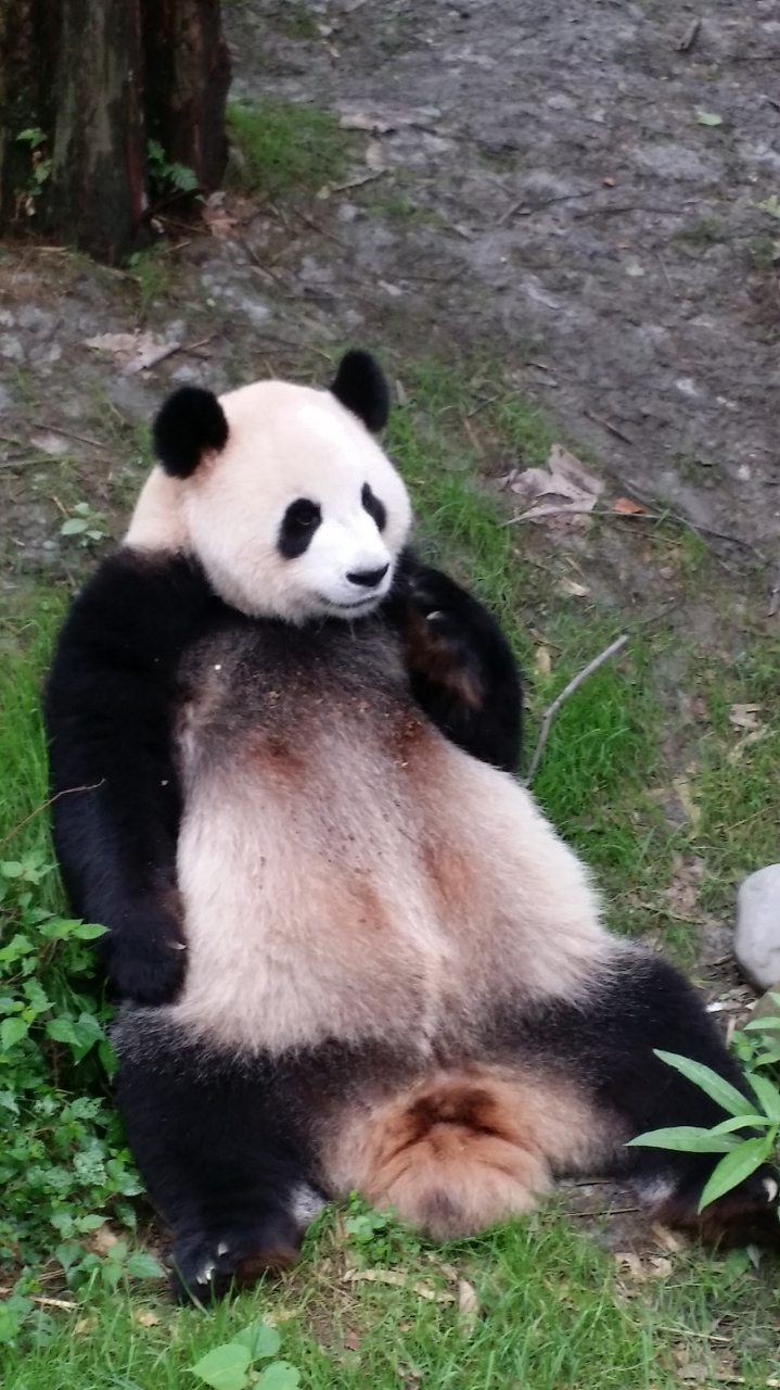 成都の茶店子バスターミナルから都江堰まで一時間、料金17元、都江堰バスターミナルから青城山行きバスで途中下車、4元でいけます。成都パンダ基地に比べると見ることができるパンダ数は少ないですが、野生に返すトレーニング施設というので、訪れて見ました。赤ちゃんパンダはいませんが、子パンダはいます。交通が不便ですので、ある程度覚悟が必要です。見学後に青城山に行くのにバスがなかなか来なくて、食堂のバイクでいきました。120元からスタートして、40元で手を打ちましたが、メータータクシーがあればそちらの方が安いと思います。タクシーがあれば、ですが。距離は10キロ程度だと思います。