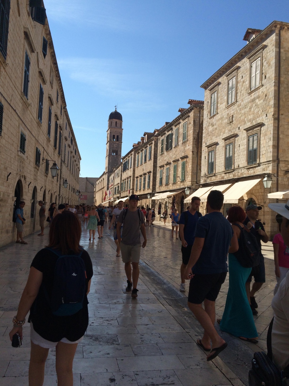 ピレ門から入ってまっすぐ伸びている旧市街のメインストリートで、パン屋、カフェ、レストラン、ジェラート屋さんなどが軒を連ねていてとても賑やかな通りで夜遅くまで開いているお店も多くとてもにぎわっていました。