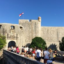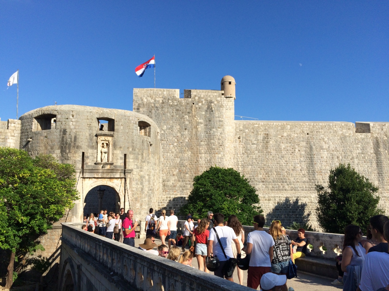 城壁に入るためのメインエントランスです。高く頑丈に組まれた石造りの門はとても歴史を感じます。門を入るとすぐそばに絵や作品を売っているアーティストたちもいました。昼間も良いですが、夜はライトアップされ雰囲気が変わります。