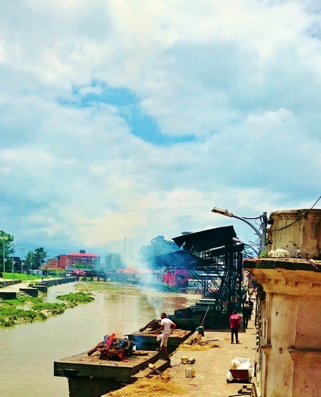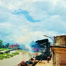 パシュパティナートの川下はアーリヤガートと言われる火葬場がある。火葬場では遺体が荼毘に付され、遺灰はバグマティ川に流され、ガンジス川へと流れていく。こうして生前に犯した罪が洗い流され、来世へと輪廻するとされる。