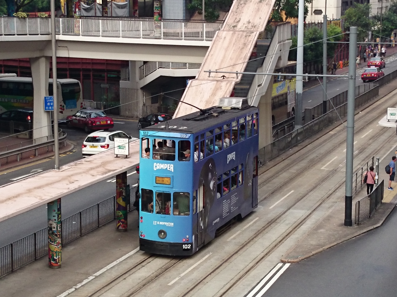 座ると尻にレールの刺激が直に来る感じの乗り物。二階に乗ると降りる時にちょっと慌てるが、気持ちいいので二階が良い。東行と西行きの同じ駅が必ずしもあるとは限らないので、要注意。酷いときは5~6台団子になって来て、その後なかなか来ないこともあるので、要注意