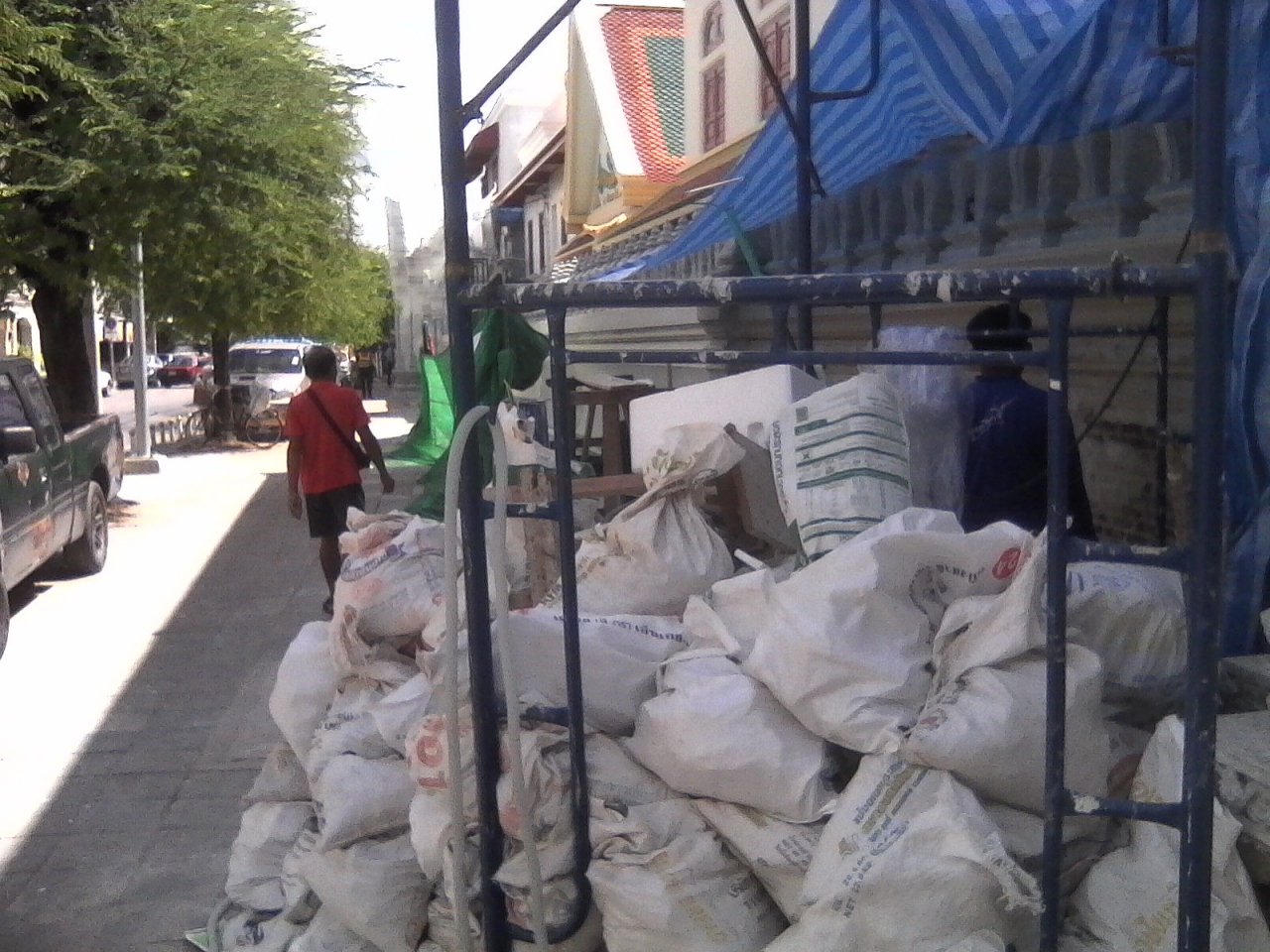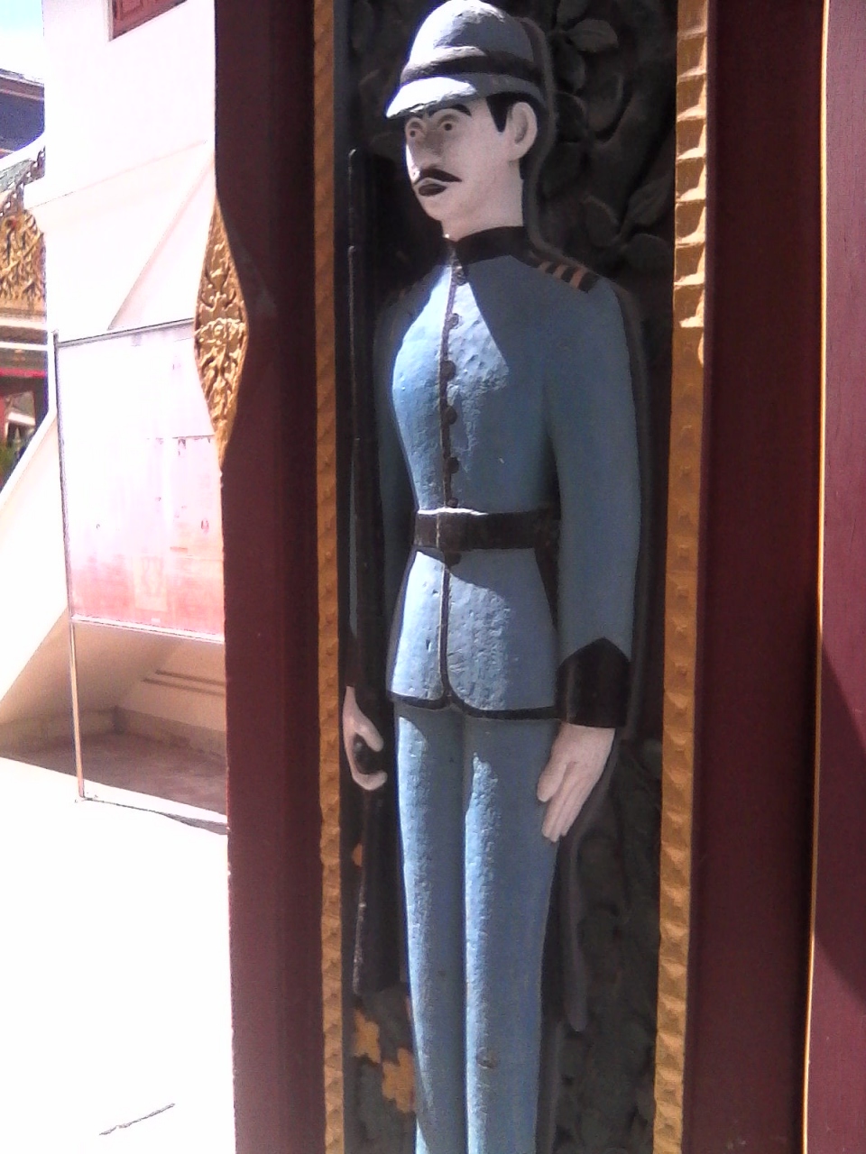 約一年ぶりに訪れたこのワット ラーチャボピットは、タイの兵隊さんを祭る寺院です。入り口には愛嬌のある兵隊さんの彫り物のスタチューがありました。寺院内には多くの仏様が祭られていました。しかし驚いたのは、去年も行っていた工事がまだ終わっていなかったことです。なんともノンビリしたタイらしい工事風景だと思いました。