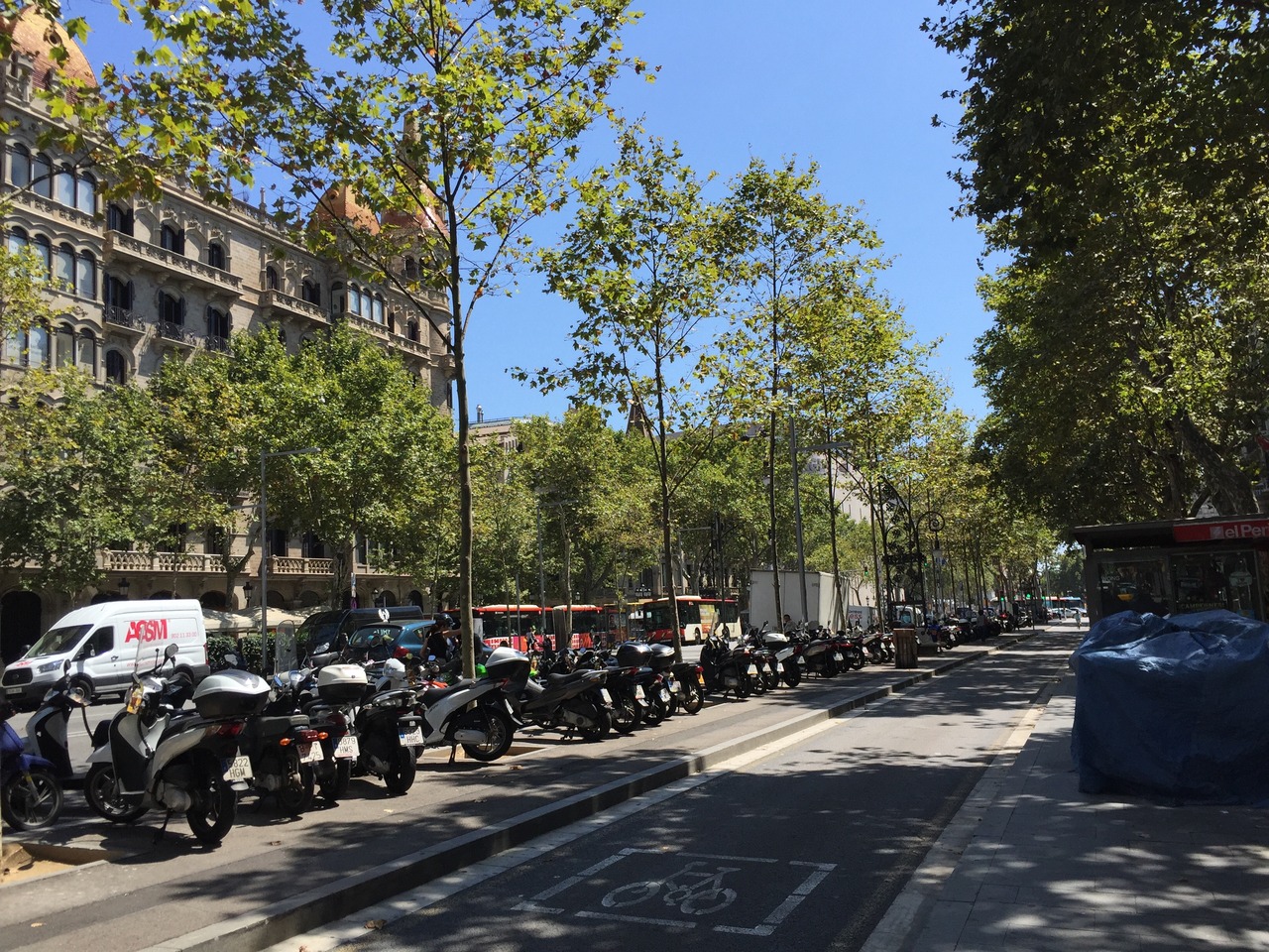 バルセロナの中心地であるカタルーニャ広場からジョアン・カルレス1世広場あたりまでの広い並木道の通りです。高級ブランドショップがありますし、有名なカサ・バトリョやカサ・ミラも面していて、歩いて楽しい通りです。