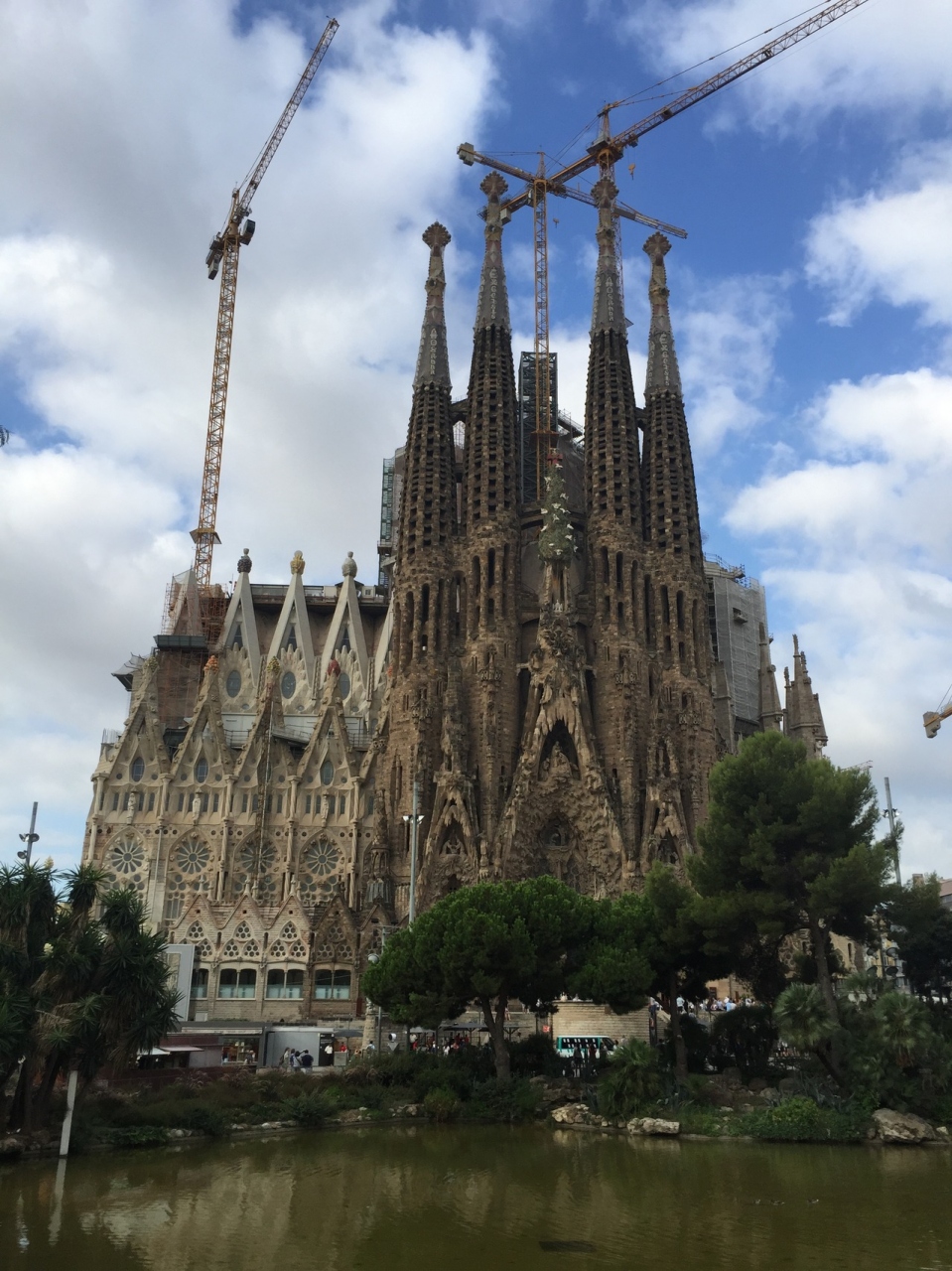 サグラダファミリアの東側にある公園で、地下鉄の出入り口にも近いです。真ん中に池があるので、その池を挟んでサグラダファミリアを遠景から撮るのにちょうどいい場所です。近くから見る前に立ち寄る人が多いようです。