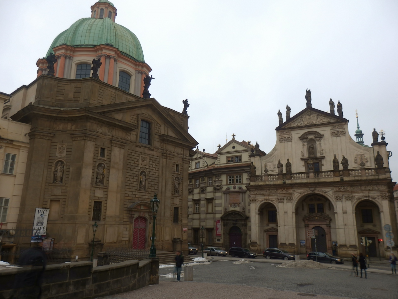 プラハではよく見ますがこちらの教会の屋根にも聖人の像が載っています。