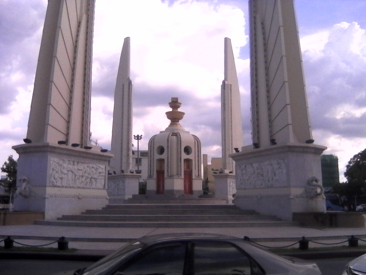 約一年ぶりに訪れたこの民主記念塔 (アヌサーワリー プラチャーティパタイ)は、カオサン通りから東へ徒歩5分のロータリーにある、民主主義を記念して造られた記念塔です。私が訪れたときには学校の終業時間と重なり、ロータリー付近は大渋滞でした。バンコクでは、車で送り迎えする親が多いので、訪れる場合は始業時間と終業時間を避けることをお勧めします。