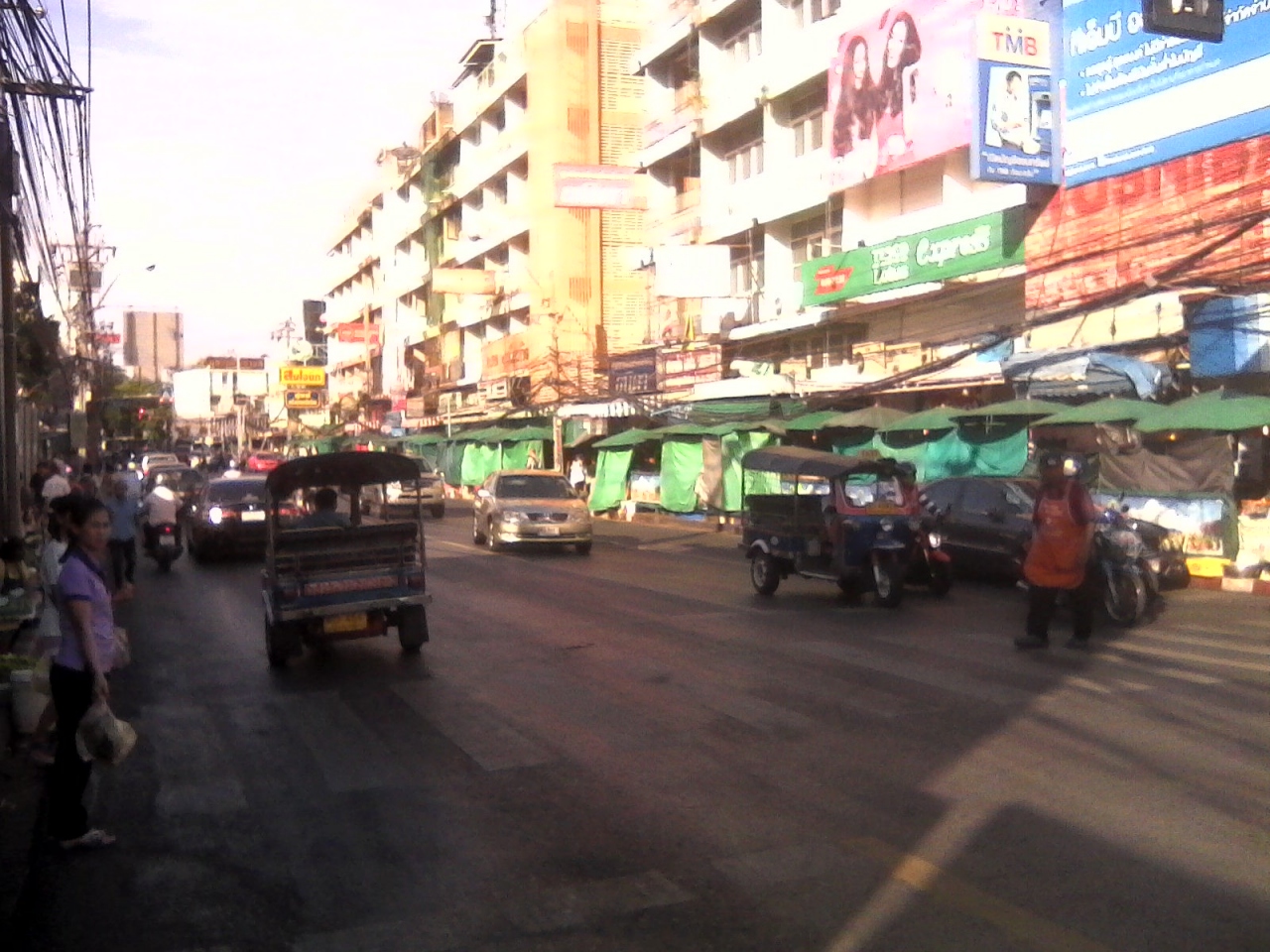 約一年ぶりに訪れたこのサムセン通りは、旧市街のメイン通りです。旧市街らしく、ツクツクが走る姿が多くみられました。交通の便は悪いですが、通り沿いにはおかずや食料品を売るの市場や、植木や植物だけを販売することで有名なテーウェート市場などがあります。交通量の多い通りなので、徒歩の場合車に気をつけたほうが良いと思います。