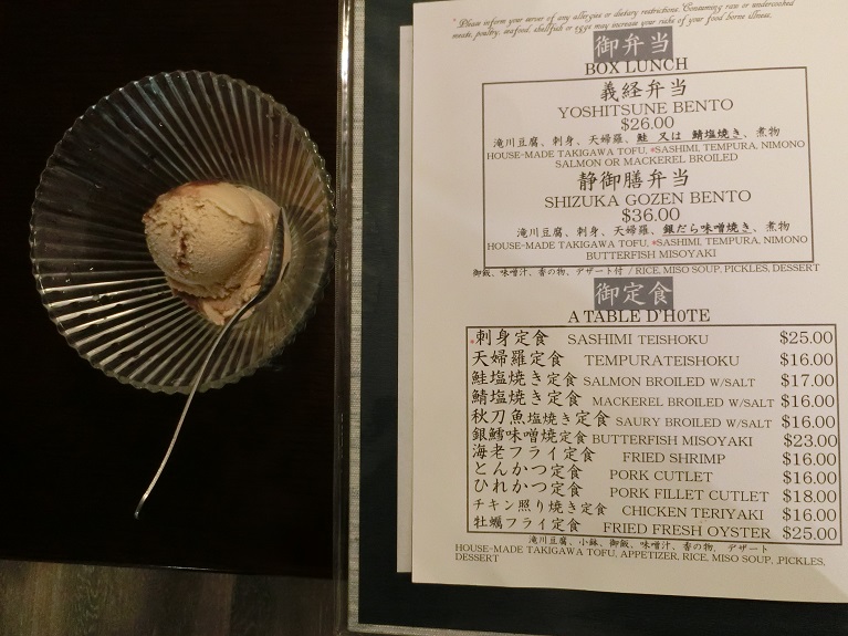 メニューを開くと定食($16~25)と弁当($26~36)が列記されていました。