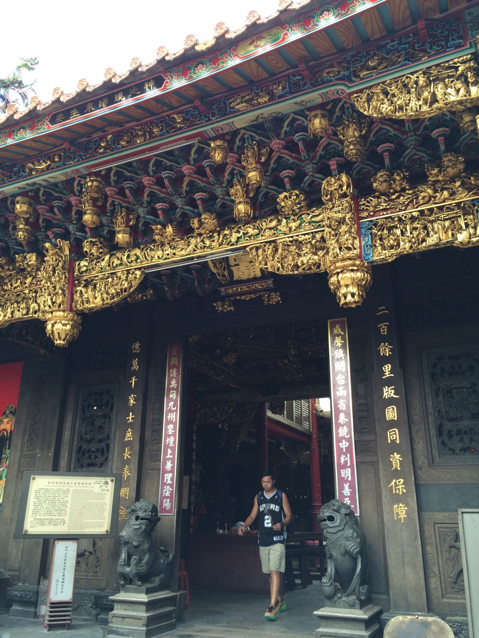台鉄の新竹駅から徒歩10分程度でした。お寺の門前町に広がる屋台街で名物のビーフンを食べたくて、まずはお参り。きらびやかな装飾と歴史を感じさせる彫刻が素敵でした。寺院の建物に迫る勢いで飲食店が軒を連ねていて驚きます。