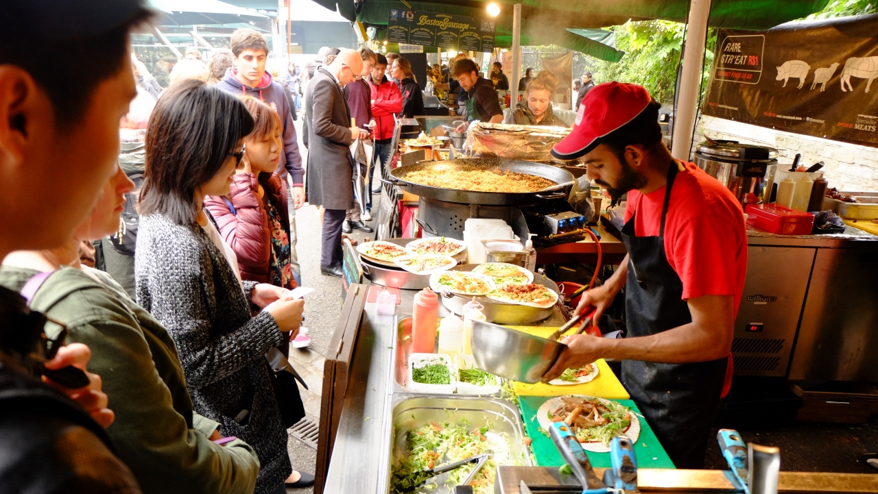 エチオピア料理ともうひとつエスニック料理のお店でtake awayしましたがどちらも美味しかったです。お店の料理人がバタバタと仕事をこなしながらも、以外と丁寧な接客をしていたのが印象的でした。欧州各国の観光マーケット訪れましたが、ここの多国籍度はかなりレベル高いです。