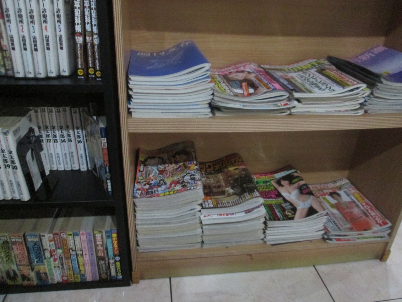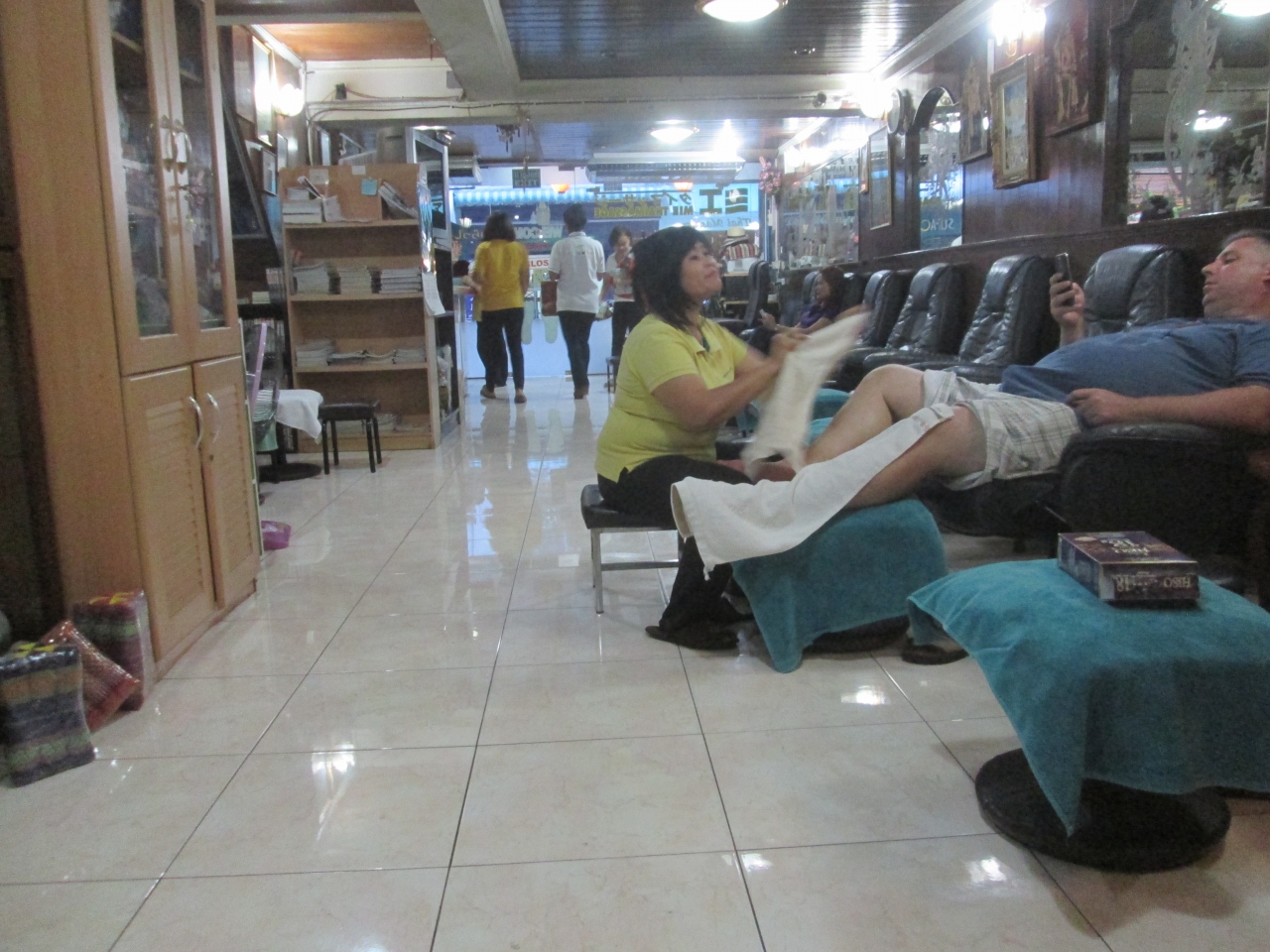 こちらのお店はタイマッサージ部屋は多く、スタッフは十分にいるのですが、お盆休みの期間中ということもあり、店内で待たされました。店内には日本の雑誌、週刊誌が置いてあり、待機している間に読むことができます。