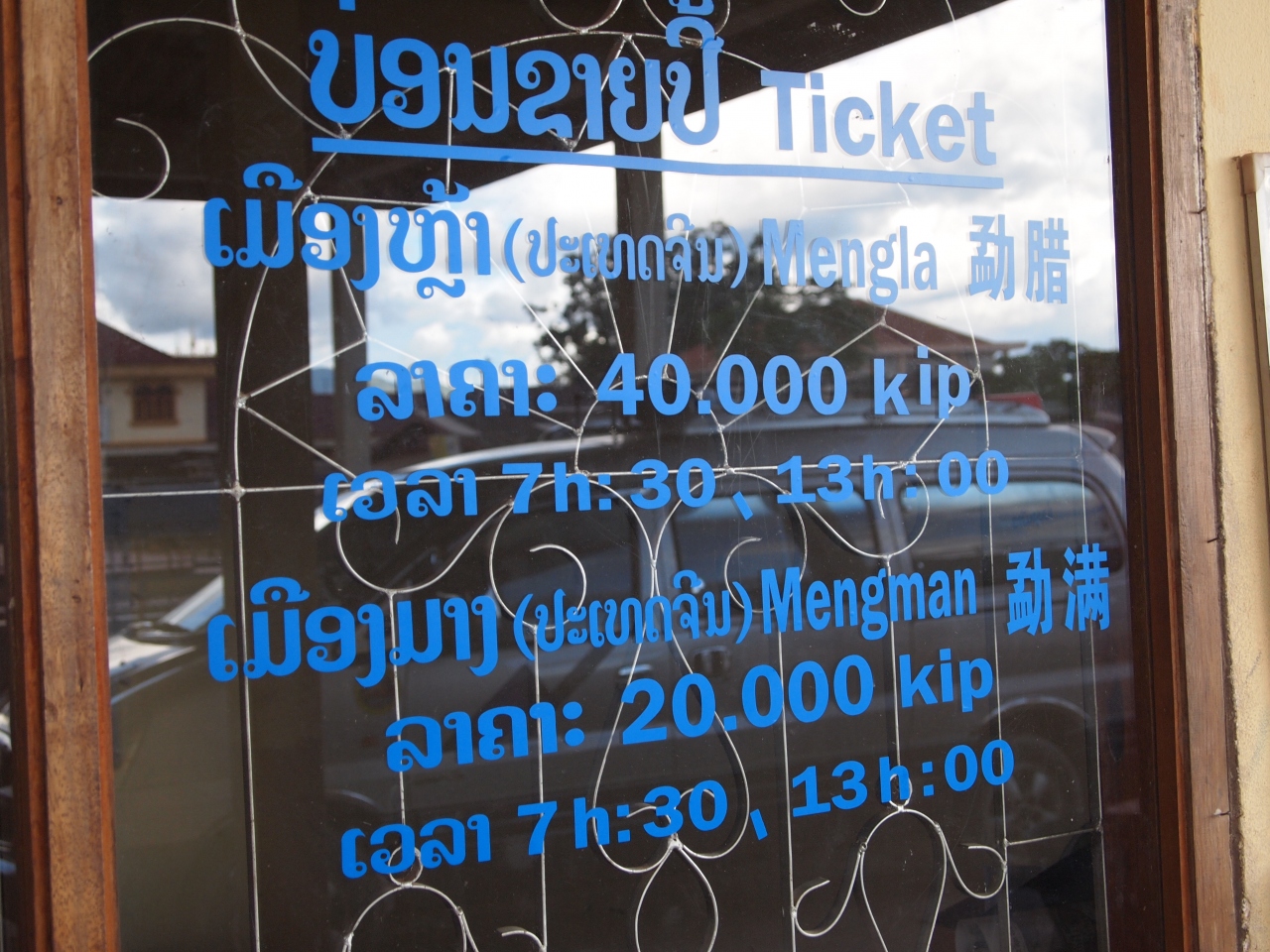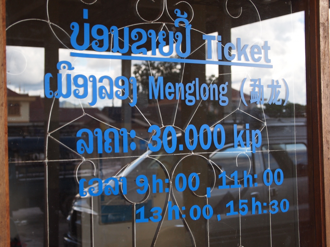 ムアンシン唯一のバスターミナルです。ムアンローンやルアンナムターへのバスのほか、メンラー行き国際バスも発着しています。時刻表は写真をご覧ください。場所は町のはずれにあり市場のすぐ近くです。ラオスのほかの町では、バスターミナルがかなり遠くにあることが多いですが、このバスターミナルは町なかから歩きで10分ほどで行けます。