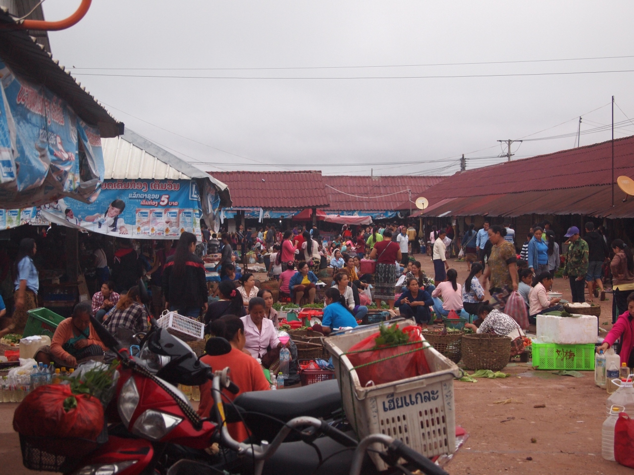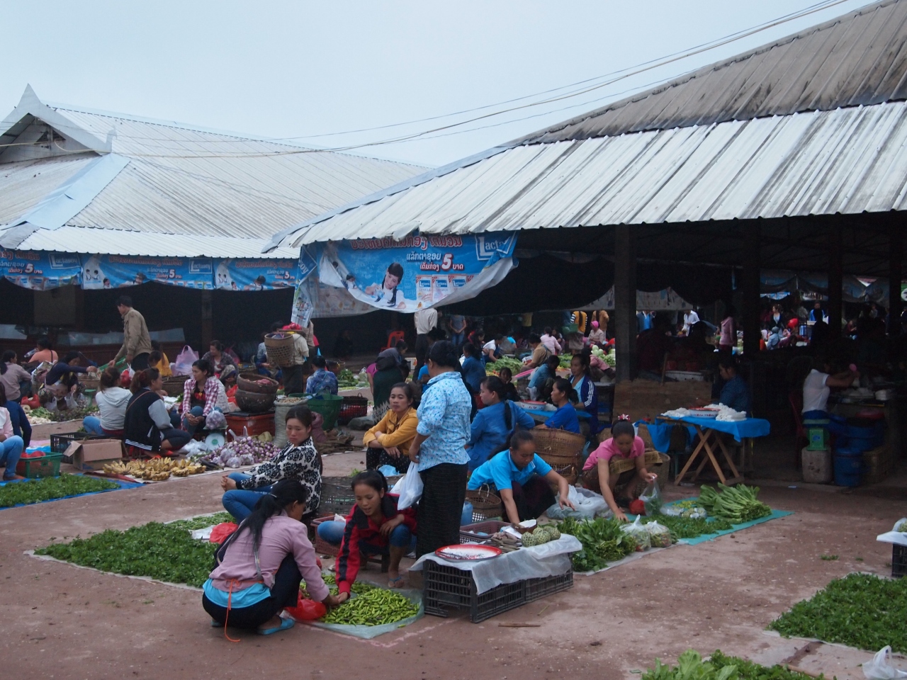 ムアンシンバスターミナルのすぐ近くにある大きな市場です。いろいろな民族衣装を着た女性たちがたくさんで、見ているだけでも十分楽しめます。食材はもちろん、衣類のお店や食堂もたくさんあります。私はここでおみやげのシンを買いました。