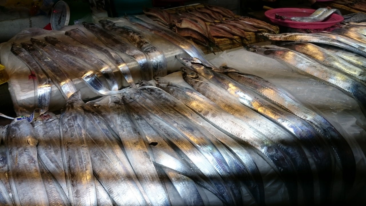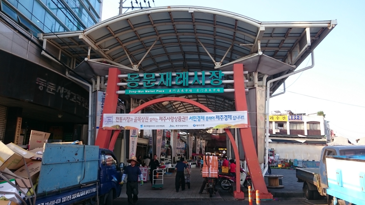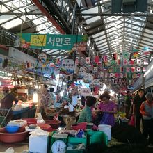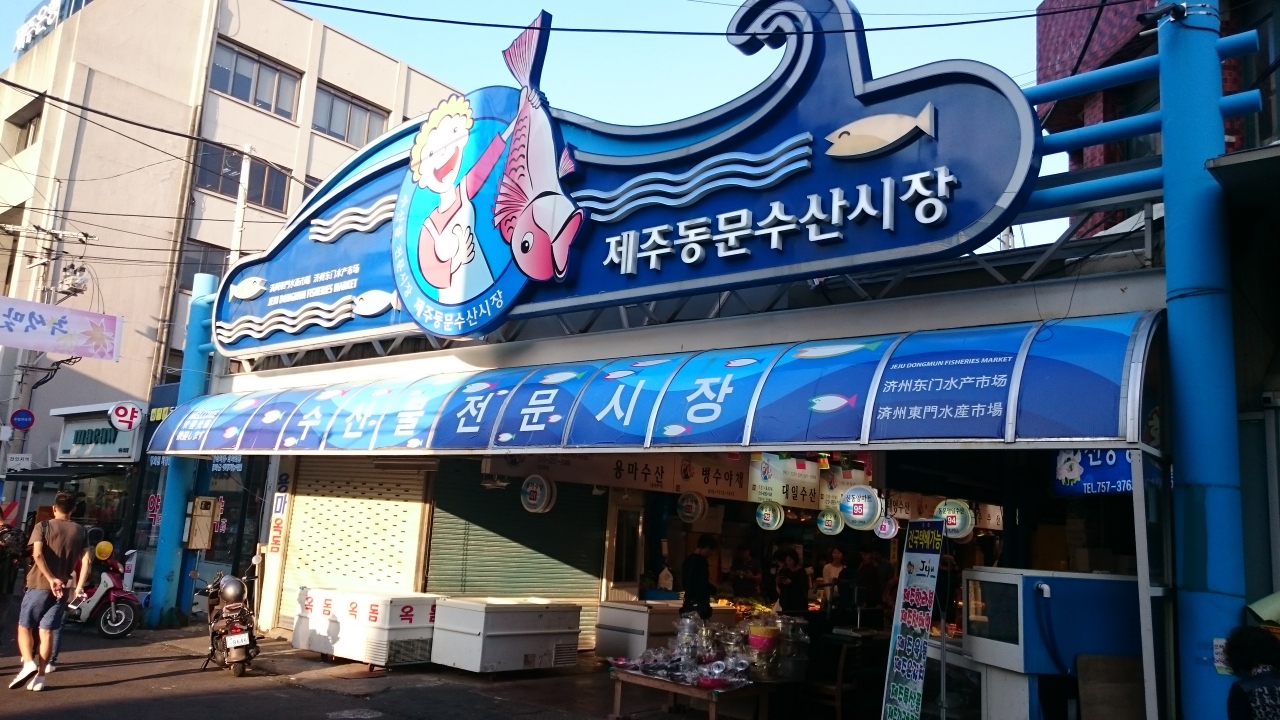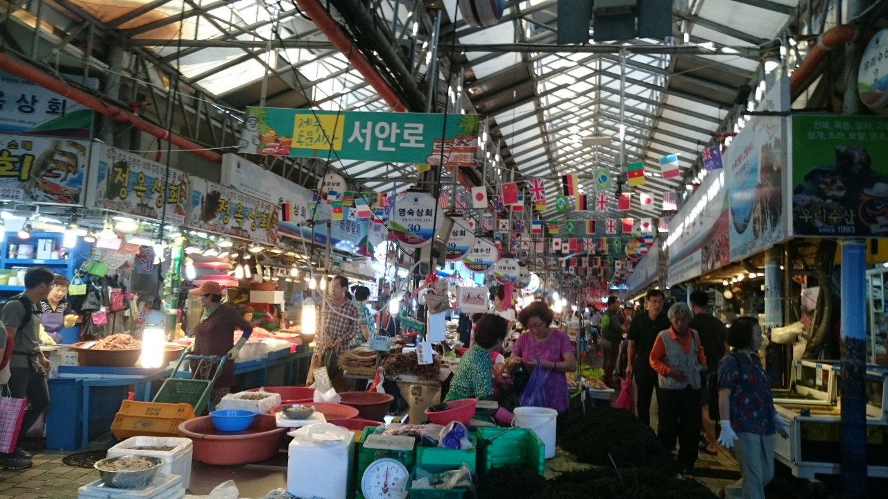 済州市民の台所ともいえる市場ですが観光客も多くいろいろなお土産も売っています。生産の海産物が中心ですが、干物や野菜、肉などもあり、またイートインのお店やキムパブやトッポギなどを食べることのできる食堂もあります。タコやタチウオなどのお刺身をコチュジャン付のパックにして売っているので、ホテルに帰って食べることもできると思います。また、デコポンをはじめとする柑橘類、またそのジュースも売っています。生活感のある市場なので見るだけでも楽しかったです。