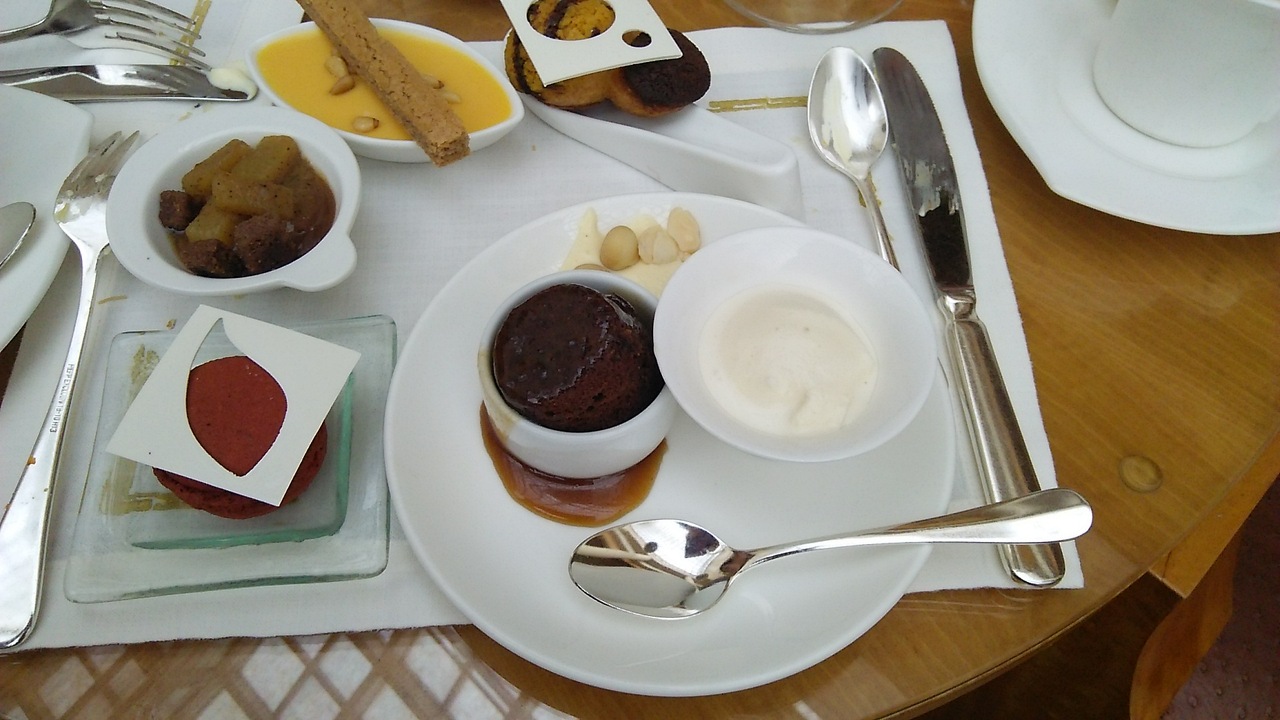 お皿をさげるのも早すぎて、まだふたくちくらい残ったサンドイッチが手の中にあっても、さっと持っていくため何もないクロスの上で食べるはめになりました。