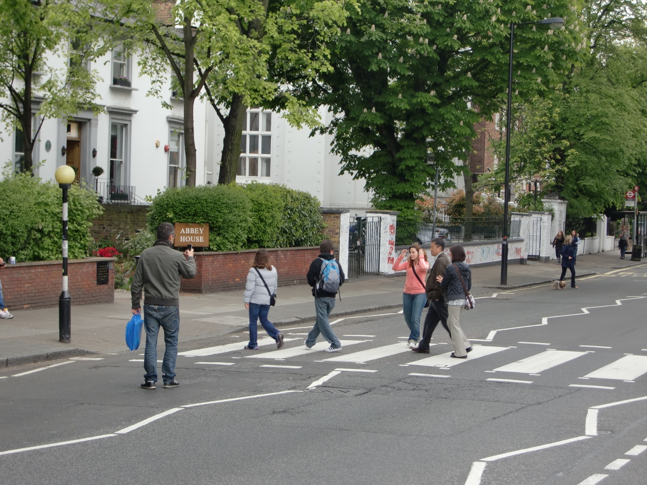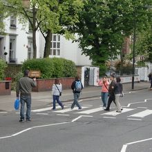 ここはなんといってもアビーロードスタジオがあった前で撮影されたカバー写真の横断歩道。普通に車が走っている中で来ないタイミングでみんな写真を撮っていました。