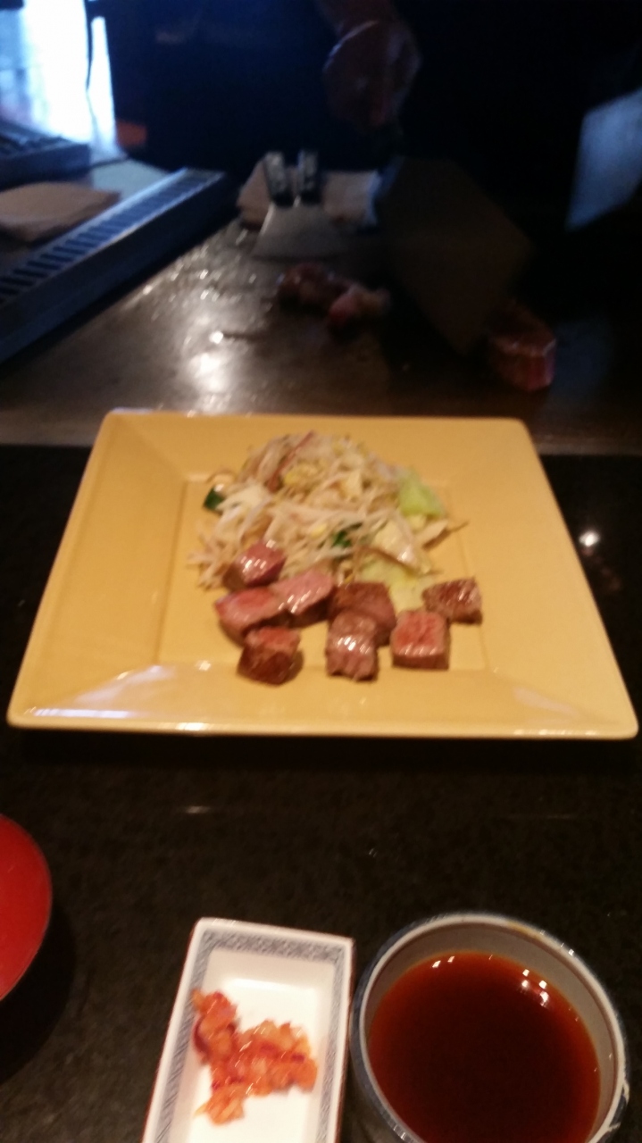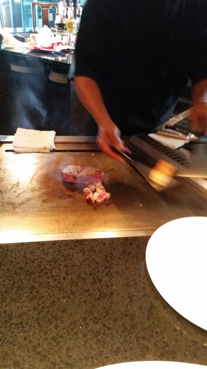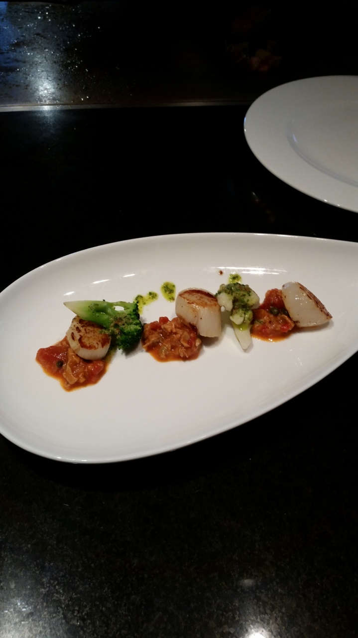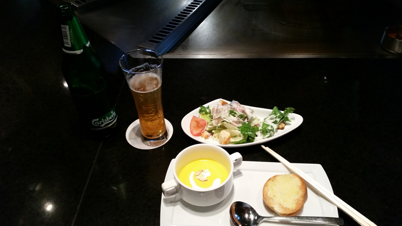 平日のランチ利用です。25ドルでサラダ、スープ、ホタテ鉄板焼、牛肉鉄板焼、コーヒー、アイスクリームと盛りだくさんで大満足です。かっちりした鉄板焼店の様子で、でも子連れ歓迎なので三歳息子を連れてのんびり出来ました。