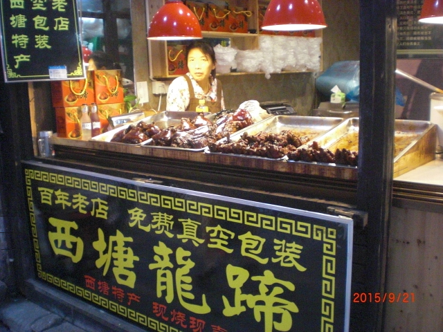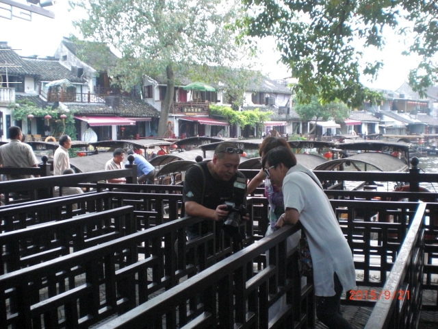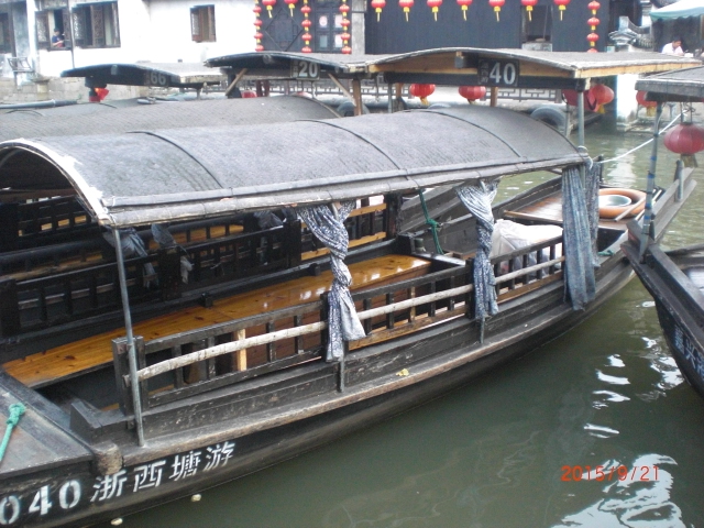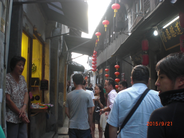 江南水郷古墳の代表格、上海市内から車で1時間半位かかりました。西塘の夜景を見るツアーだった為、午後3時にホテルを出発しました。水路沿いに白壁の民家が連なり、そのほとんどが明清時代の建物。古橋も沢山残っており、その内11脚は宋時代の物で今も現役で使われているとの事、驚きです。狭い路地にびっしりと食べ物屋さんや雑貨やさんが並んでいて、歩いてるだけでテンションも上がります。暗くなるとそこに赤い提灯がともされ、まるで別世界にいるよう。赤い灯が幻想的に揺れる中、小舟に乗って水路をゆっくりと30分位かけて往復しました(乗船料1人120元、約2400円)。西塘に行ったら、ちょっと高いですが、絶対小舟乗船はお勧めです。