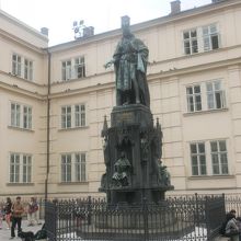この銅像は没後500年の1915年に建てられ、旧市街広場のシンボルとなっている。