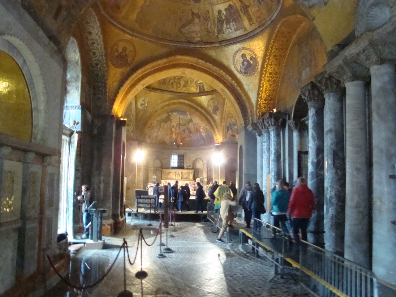観光当日、強い雨も降っていたのでサン・マルコ広場は浸水していましたが、まさか寺院の中まで浸水しているとは思いもよりませんでした。