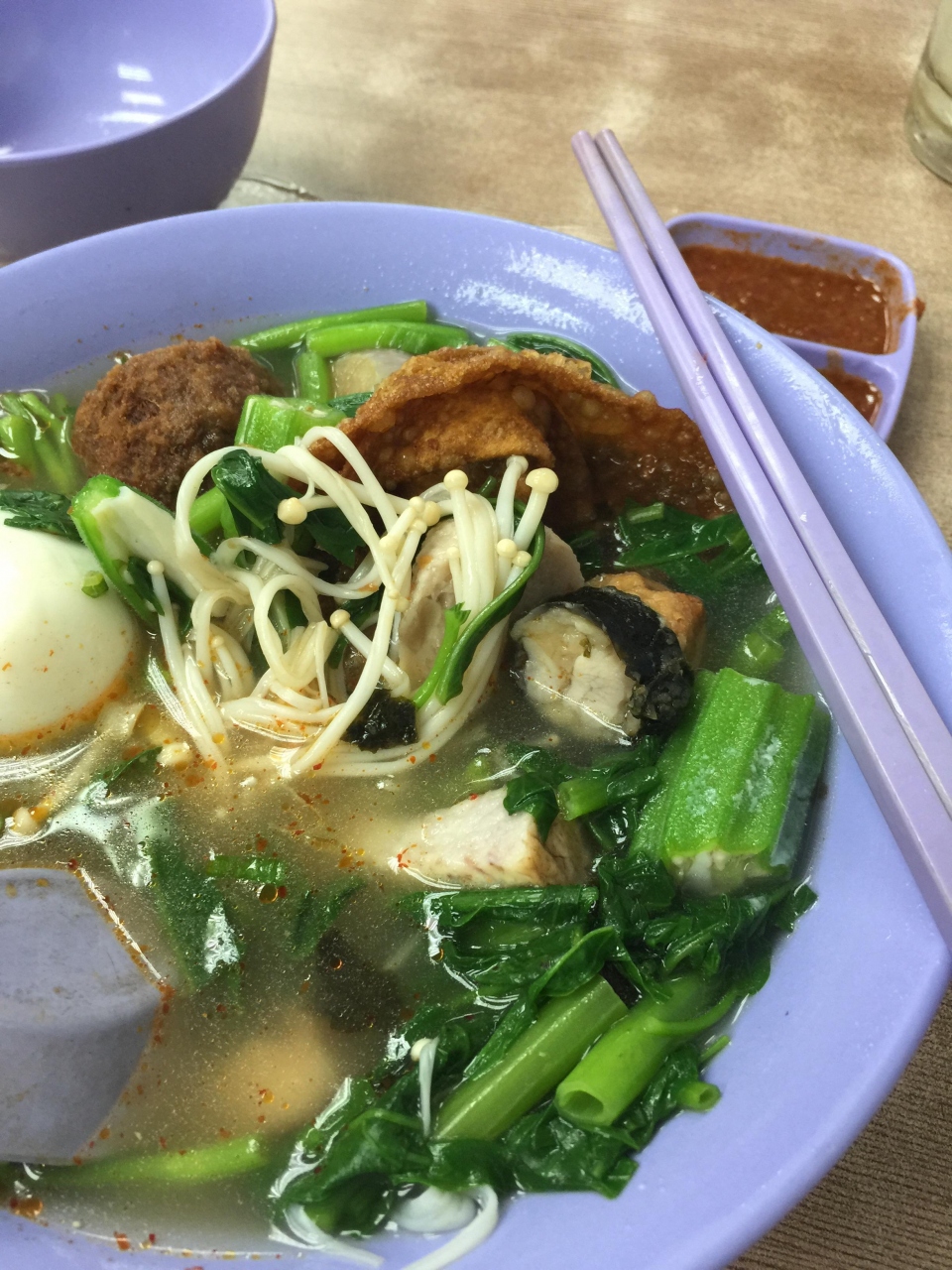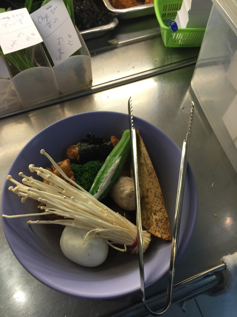 ラッキープラザの6階にあり、5階にある日本人歯科に行ったついでに必ず寄るルーティーンになっています。ヨントーフ(醸豆腐)は、野菜をはじめ、魚の練り物、豆腐、揚げ餃子、卵などの中から、お好みのものを選んで湯がいてもらい、スープに入れて食べる健康食。ここのお店の人気の具財は巨大シイタケと自家製肉ボール。つけダレはお店によって違いますが、通常、甘味噌とチリソースがついてきます。こちらのお店は平日の昼時はローカルの人で激こみ。時間を外すか、週末の午前中に行くのがおすすめです。