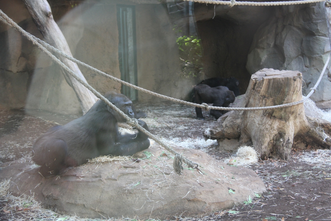 類人猿舎は新しくなっていて、ゴリラやオランウータン、チンパンジーは群れで飼われていて、子供も沢山います。